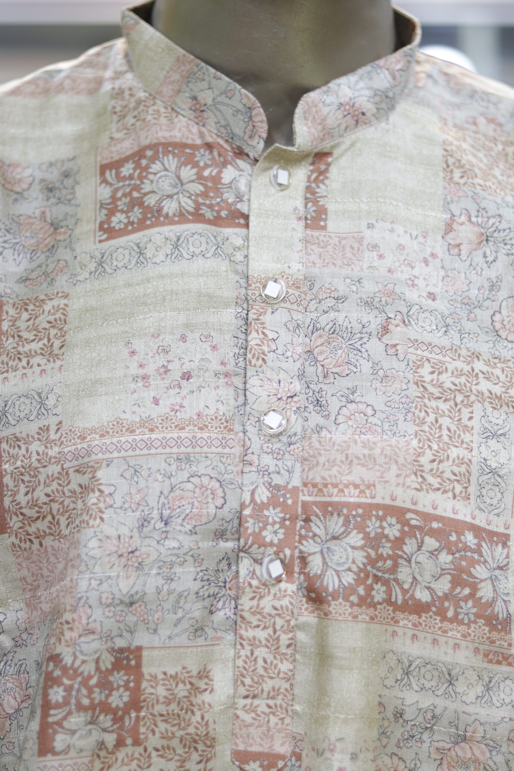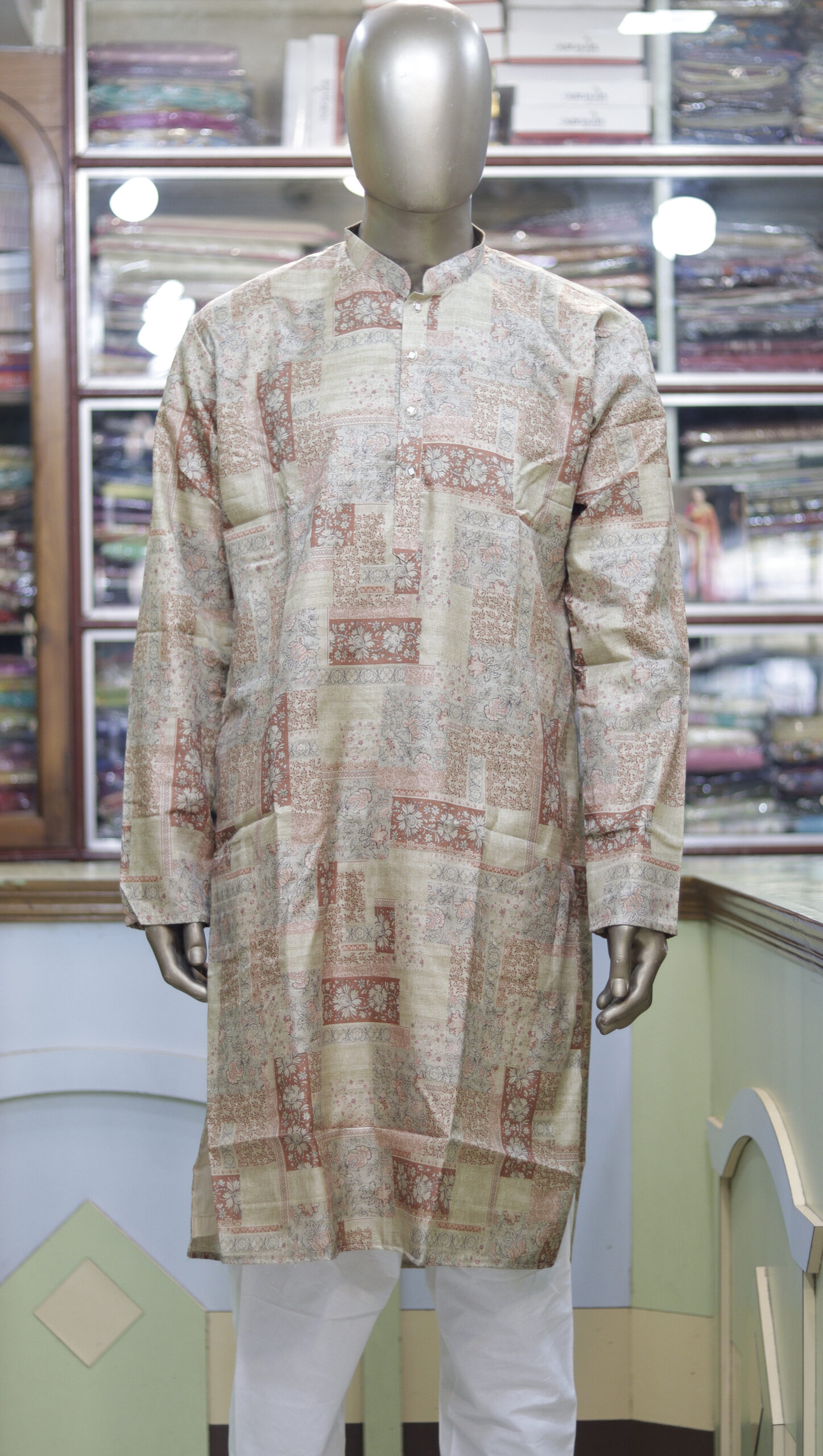 Upgrade your ethnic wardrobe with this stylish printed cotton kurta, crafted for men who love a blend of tradition and modern aesthetics. Featuring an intricate patchwork-inspired print in earthy tones, this kurta offers a sophisticated yet relaxed look, perfect for casual outings, festive occasions, and cultural gatherings.